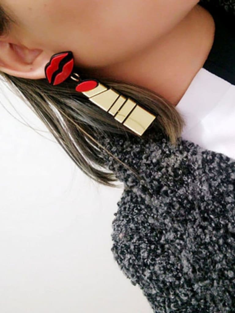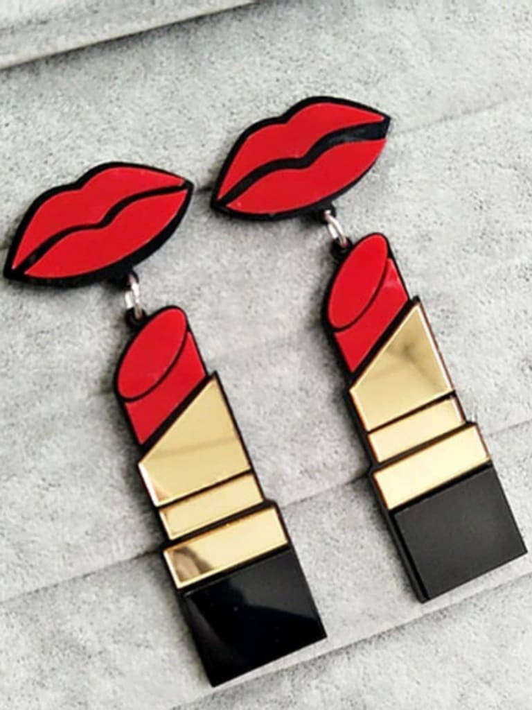 Take your style to the next level with your choice of trendy acrylic red lips drop earrings.