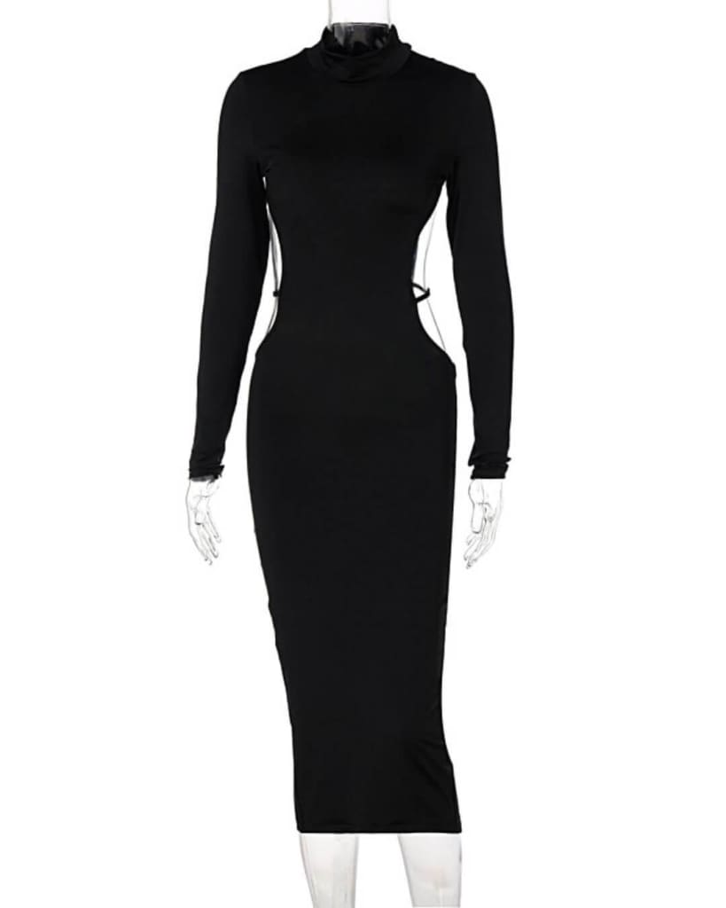 Dip a toe into the trend with chic backless long sleeve black dress. Perfect to wear to your upcoming party!