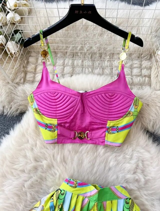 Make a bold statement with our Baroque Print Crop Top + Mini Pleated Skirt Two Piece Set. This eye-catching ensemble features a vibrant baroque-inspired print that brings luxury and flair to your look. The fitted crop top flatters your figure with its structured silhouette, while the pleated mini skirt adds playful movement and a flirty touch.