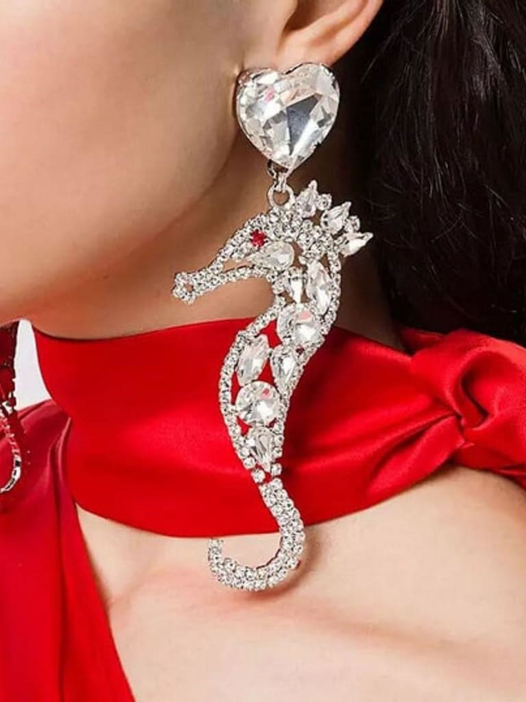 Show off your sparkling personality with our irresistible big seahorse rhinestone drop earrings.