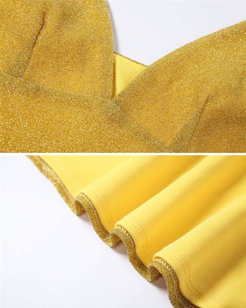 Got a big event to RSVP yes to? our bling glitter shiny v-neck backless mini yellow dress is perfect for any occasion!