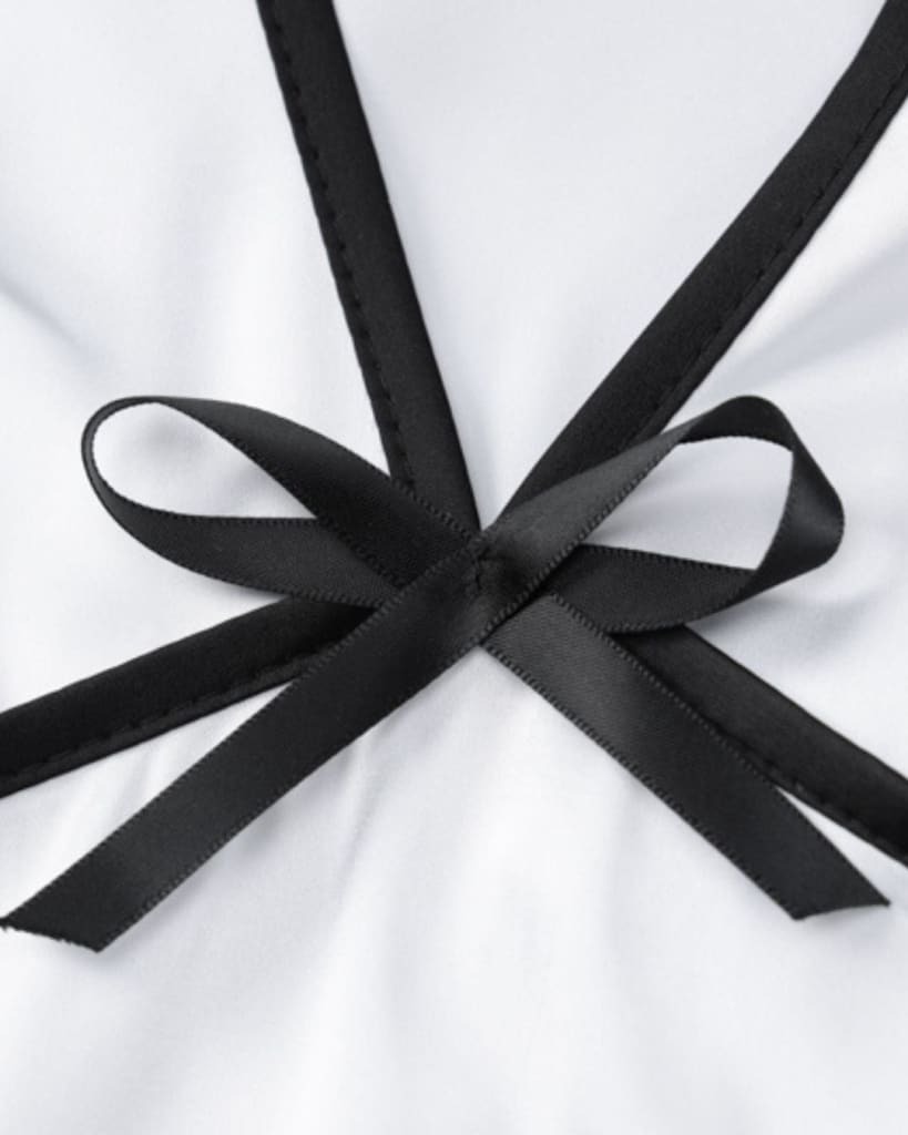 Picture this: You walk into the room, and all eyes are on you. The V-neckline and short sleeve design create a flattering silhouette, while the satin fabric adds a touch of sophistication and glamour. The elegant bow tie detail in the front adds a playful and flirty touch, making this dress a true showstopper.