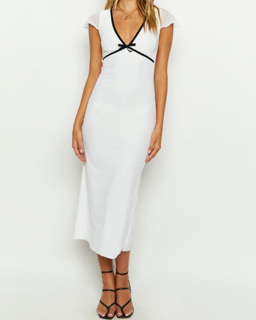 Your search for the perfect party dress ends here! Introducing the Bow Tie Deep V Elegant Short Sleeve Midi Dress from STYLORD Boutique. This dress is not just a dress; it’s a statement. It’s for the fashionistas, the trendsetters, and the style mavens who aren’t afraid to turn heads and take risks. Whether you’re attending a summer wedding, a cocktail party, or a girls’ night out, this bodycon dress will have you looking and feeling fabulous.