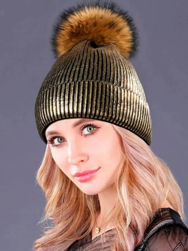 Make sure you’re warm and cozy from head to toe with one of our quality gold and black fur beanie.
