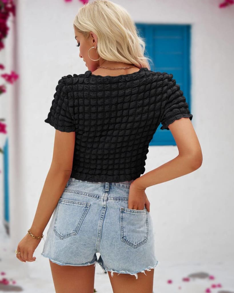 This Bubble Elegant O-Neck Short Sleeve Top is perfect for any occasion. Its casual style makes it perfect for everyday wear, while its special design is great for any summer parties. Get ready to turn heads with this stylish top!