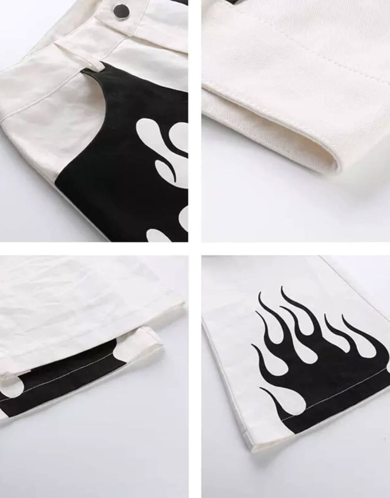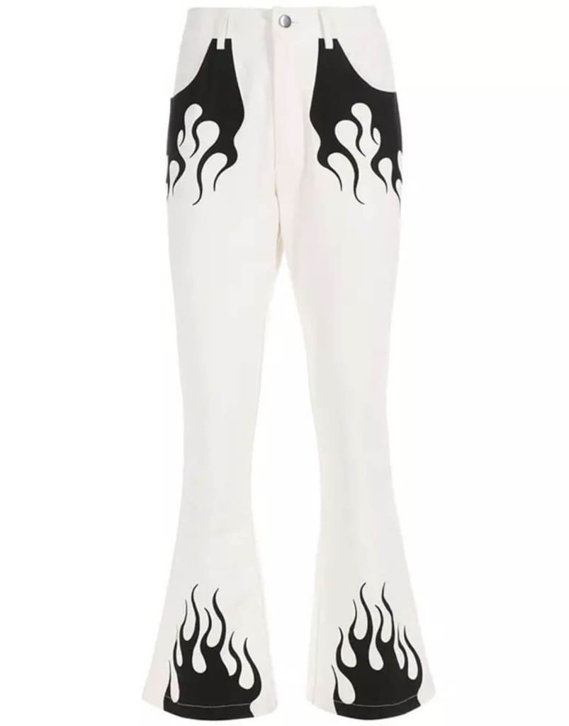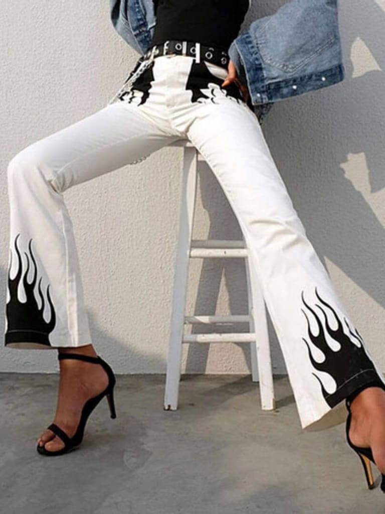 Details make all the difference so upgrade your pants with our stylish casual flame print long flare pant. Update your closet with the latest on-trend selection.