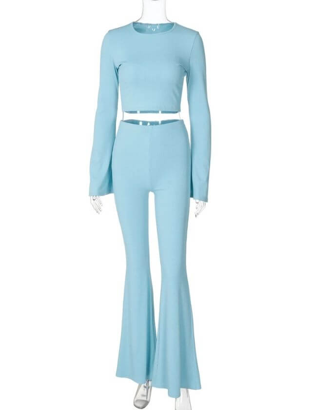 This fabulous ensemble is perfect for the fashionista who loves to make a statement and isn’t afraid to experiment with their style. The set features a bodycon top with a trendy O-neck design, paired with flare pants for a sleek and stylish look. The long sleeves and stretchy fabric provide the perfect combination of comfort and chic style, making it a must-have for your winter wardrobe.