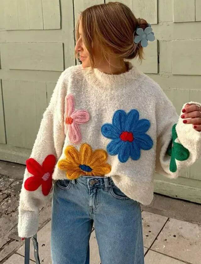 Introducing the Casual Floral Knitted Sweater, the must-have addition to your winter wardrobe. This cozy sweater is the perfect blend of style and comfort, making it ideal for all your casual outings. With its charming floral design, this sweater adds a touch of whimsy to your look, perfect for those who love to embrace their unique style.