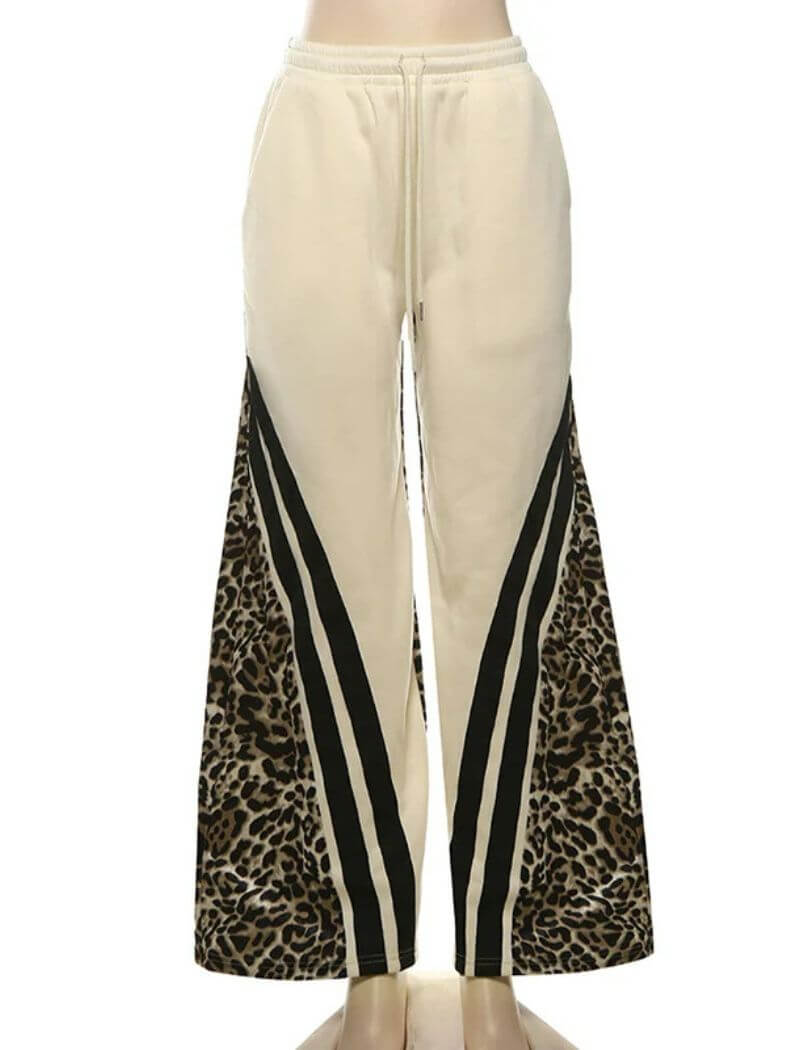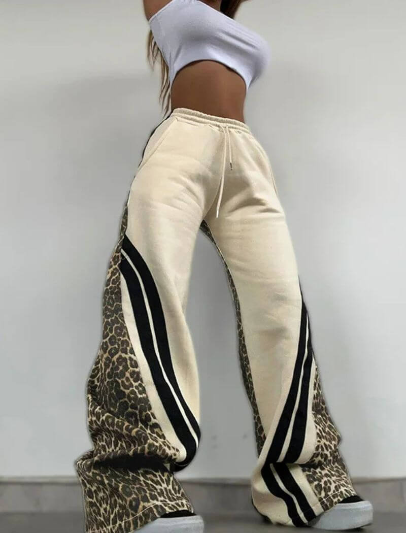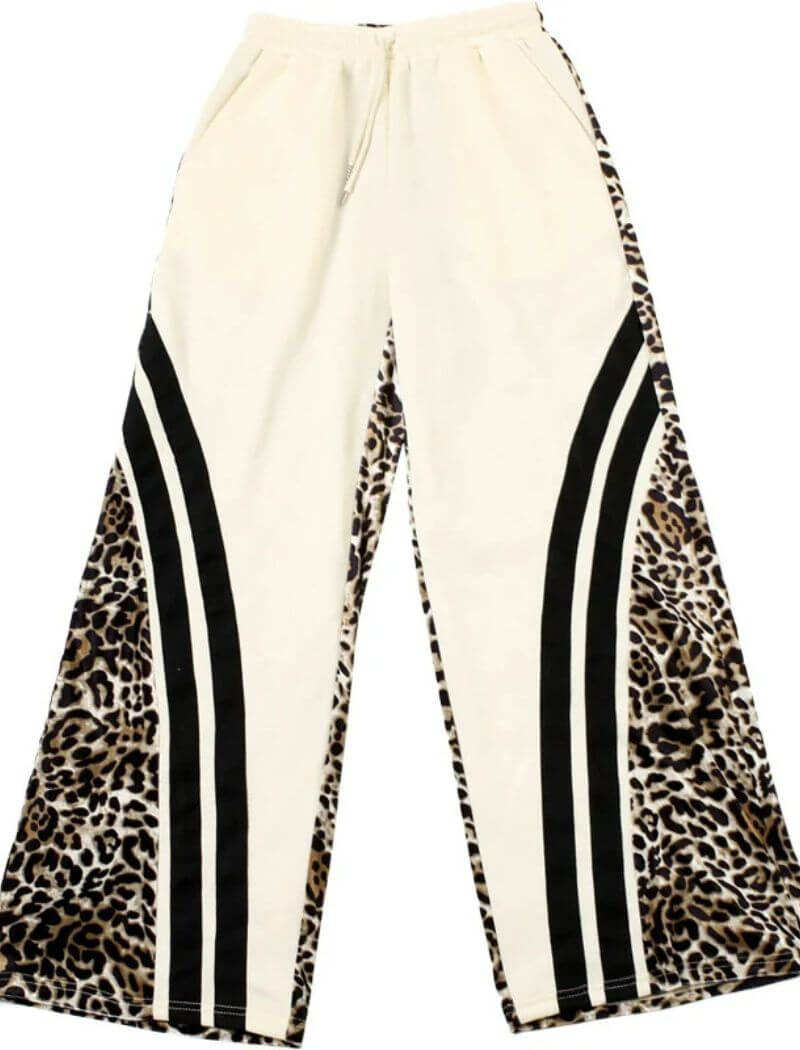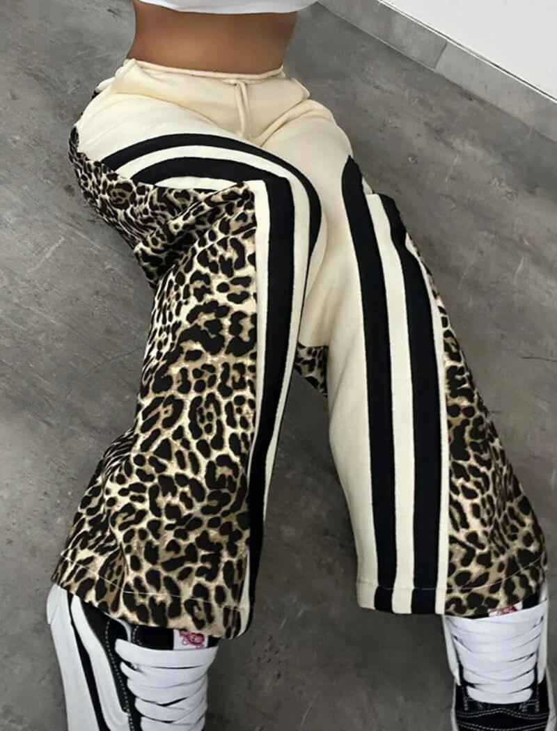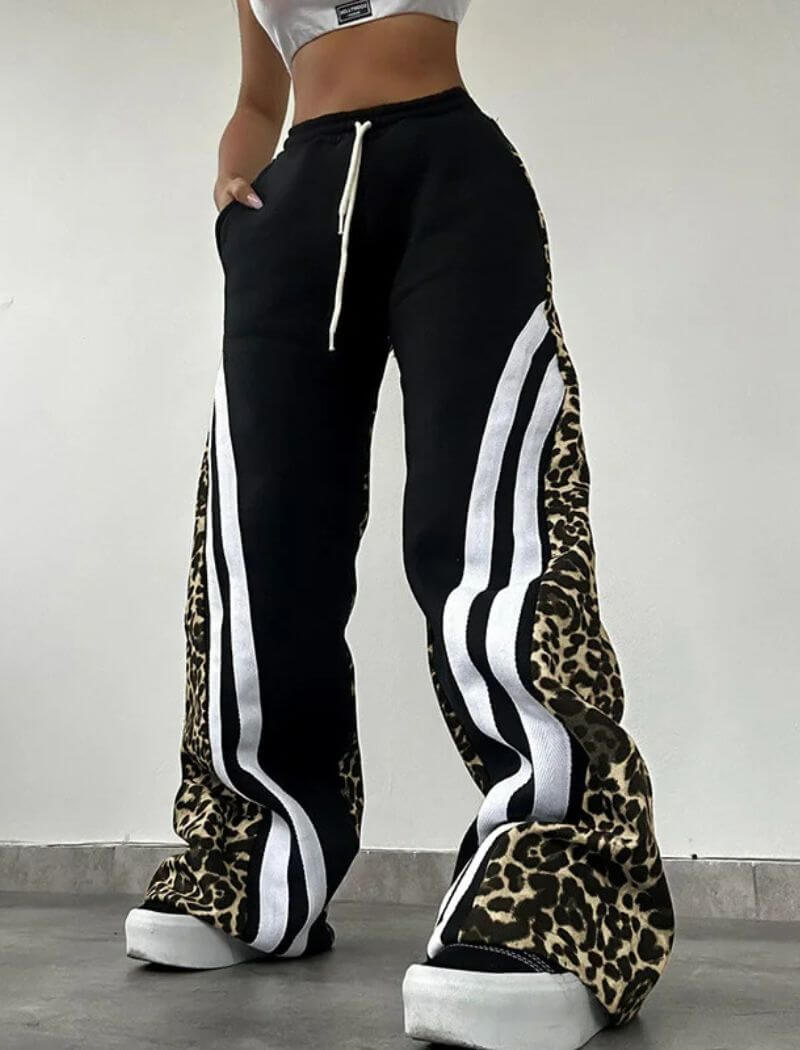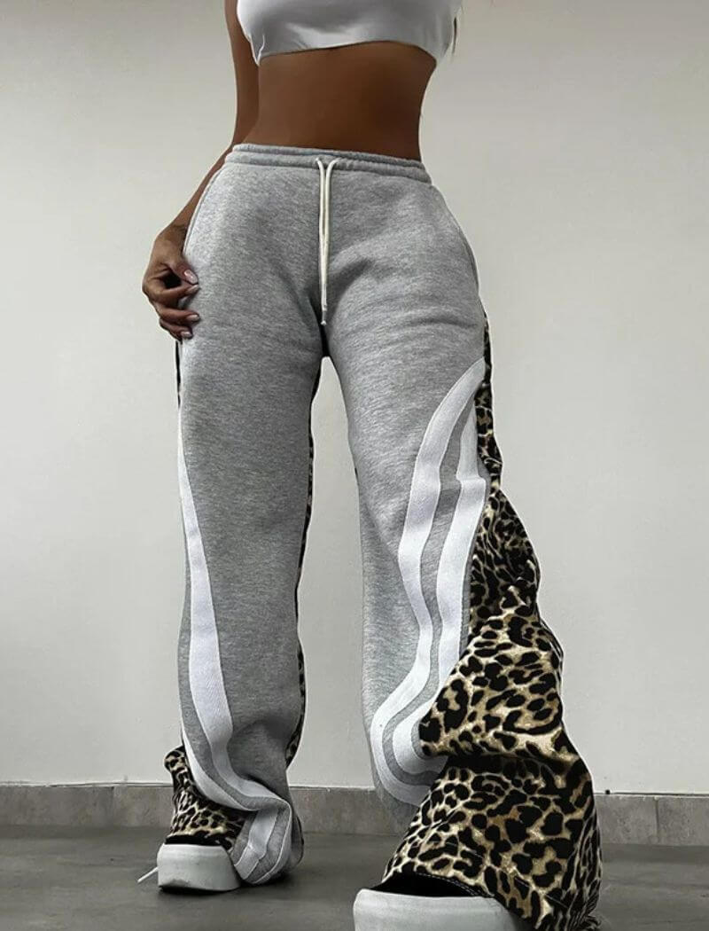 With a playful leopard print design and trendy panelled stripes, these joggers are sure to turn heads wherever you go. Whether you’re out for a casual day with friends or cozying up at home, these pants are the ultimate fashion statement.