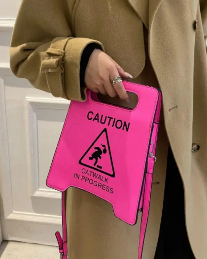 Flaunt your style with this exclusive caution catwalk in progress fashion bag. Available in yellow, and pink color.