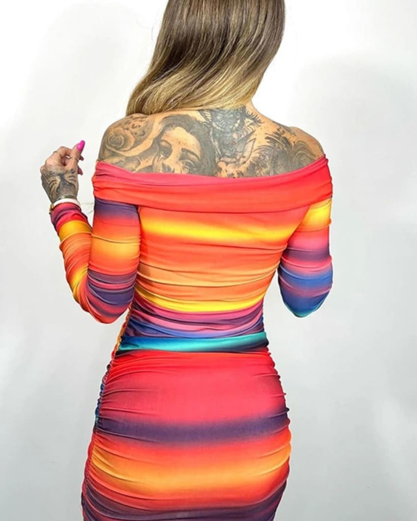 Unleash your inner fashionista with our Colorful Printed Sexy Long Sleeve Off Shoulder Dress! The vibrant print and flattering off-shoulder design will make you stand out in any crowd. With its long sleeves keeping you warm and stylish, this dress is perfect for any occasion. Elevate your style game today!