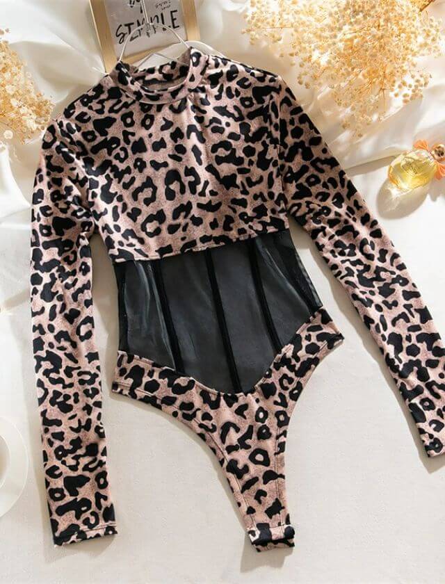 Get ready to unleash your inner wild side with our Corset Leopard Print Long Sleeve Bodysuit. This stunning piece is perfect for those who aren’t afraid to make a bold fashion statement.