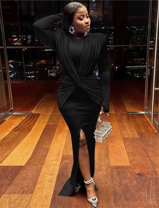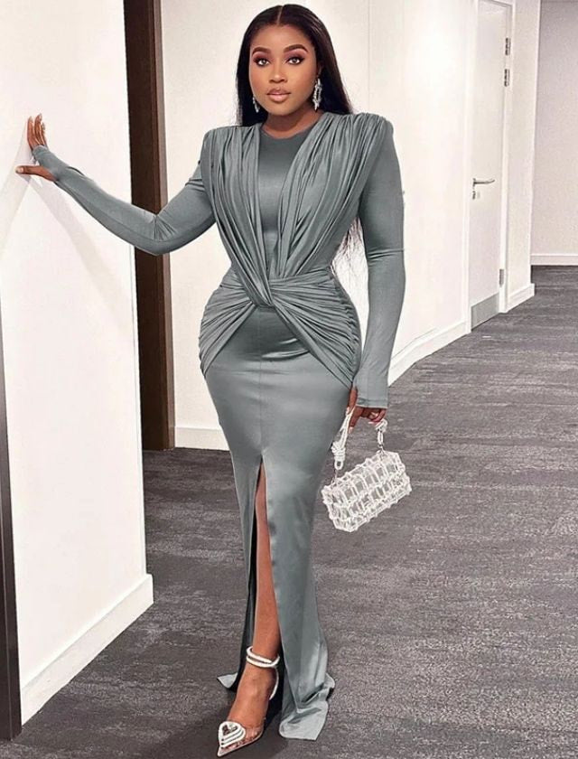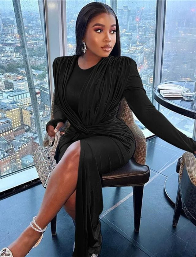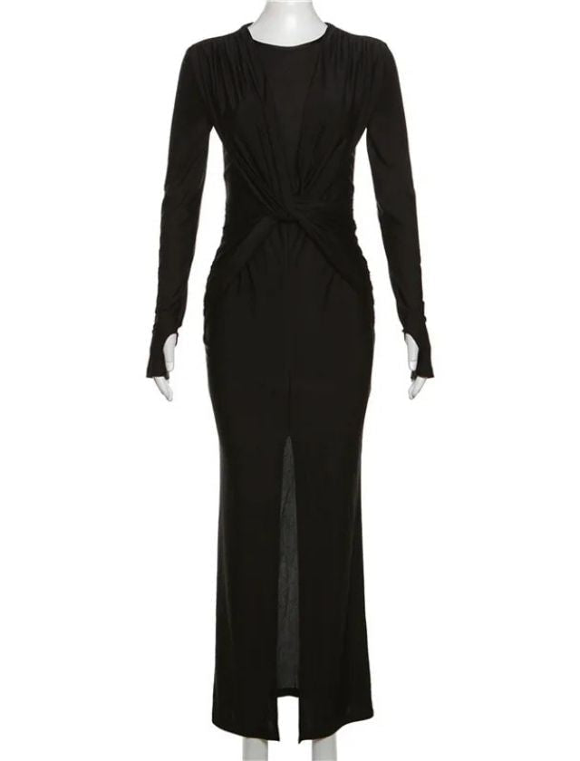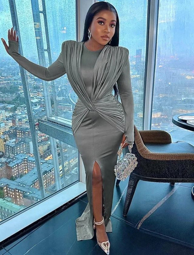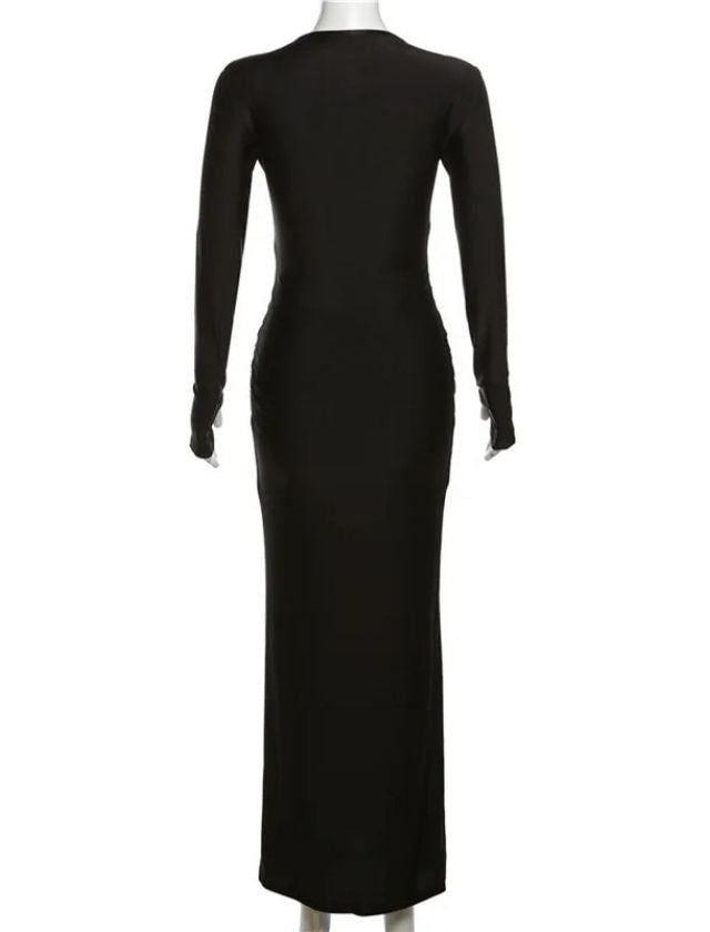 Expertly designed with a cross ruched detailing, this solid O-neck bodycon maxi dress flatters your figure while providing a comfortable and stylish fit. Made with high-quality materials, it is perfect for any occasion, giving you a classic and sophisticated look. Elevate your wardrobe with this versatile and timeless dress.