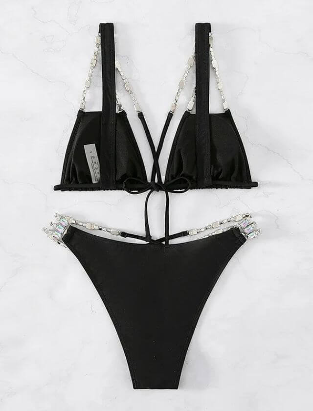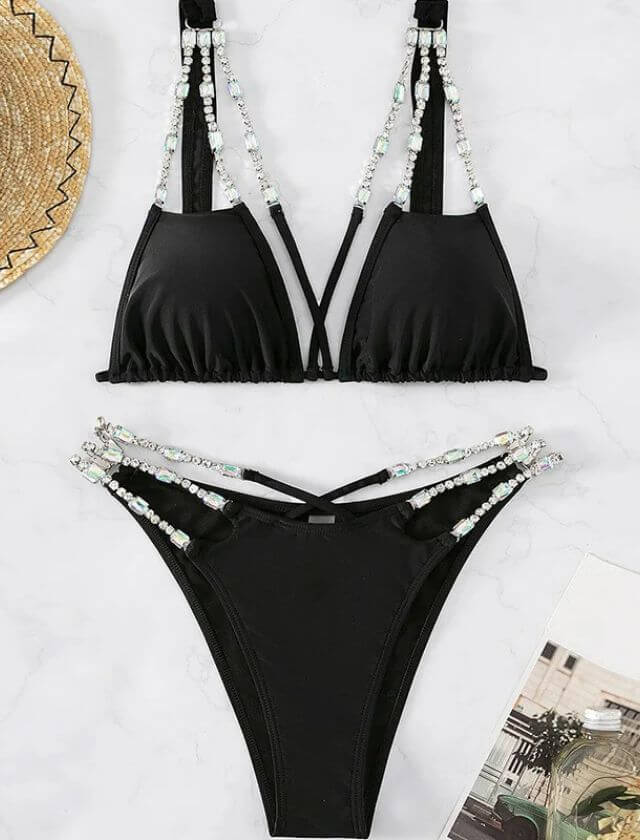 Shine bright in our Crystal Designer Cut Out Two Piece Swimsuit, where luxury meets bold beachwear. This glamorous set features shimmering crystal embellishments that catch the light with every move, paired with daring cut-out details for a striking silhouette. The designer-inspired look is crafted to turn heads, whether you’re lounging poolside or making an entrance at a beach club.