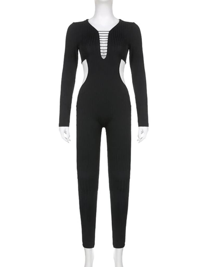 Turn heads wherever you go with our cut out long sleeve bodycon black jumpsuit from the women’s jumpsuits selection at STYLORD.