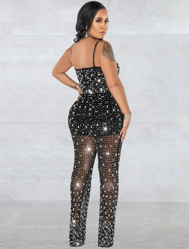 Shine bright and steal the spotlight in our Diamonds Crystal Sequin Wide Leg Jumpsuit. Embellished with shimmering sequins and delicate crystal details, this jumpsuit radiates luxury and confidence from every angle. The flattering V-neckline and wide-leg silhouette add movement and elegance, making it perfect for glamorous nights out.