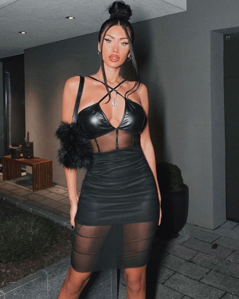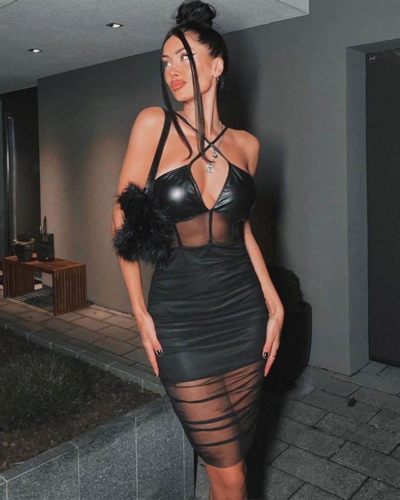 This tasteful black dress is a wardrobe essential. Crafted from a unique blend of corset mesh, it hugs your body for a curve-hugging fit. The modern design creates a timeless silhouette that will turn heads no matter the occasion.