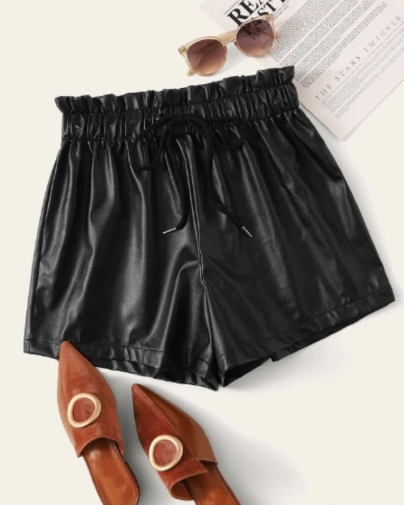 Elevate your style with our elegant drawstring waist PU short that fits every occasion.