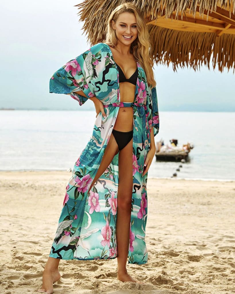 Lounge in luxury with the Elegant Floral Print Cover Up. Feel like a princess all day at the beach or pool, while the intricate floral pattern adds a layer of sophistication to your swimsuit. Make a statement with summer style and elegance – this cover up is the perfect choice!