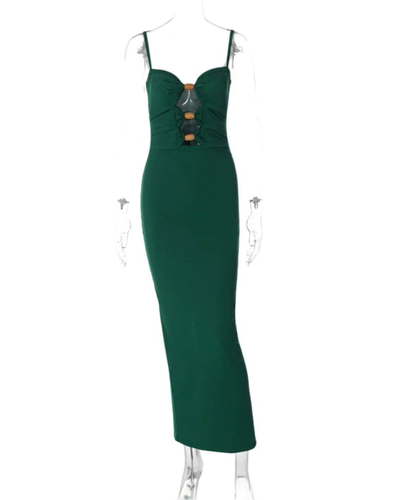 This stunning midi dress is ideal for any special occasion, providing a graceful yet eye-catching look. The solid color dress features a stylish lace-up bodice, an alluring side slit, and an elegant hollow out design for a unique touch. Enjoy total comfort and breathtaking style with this incredible midi dress.