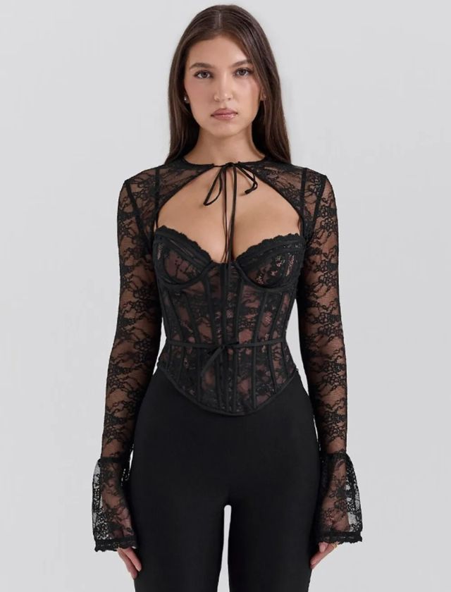 Step into the spotlight and shine brighter than ever with our Elegant Lace Corset Long Sleeve Top! This stunning top is the perfect blend of elegance, style, and confidence, making it a must-have for any fashionista who is unafraid to experiment with their look.