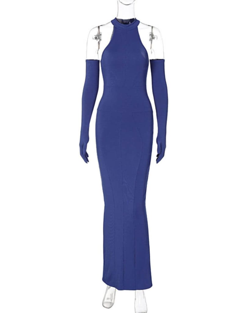 Fall in love with our elegant o-neck celebrity long sleeve evening bodycon blue midi side split dress for a look that tells your story.