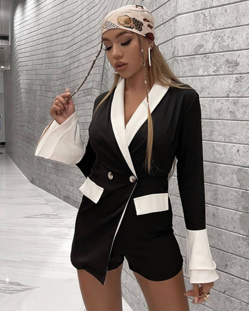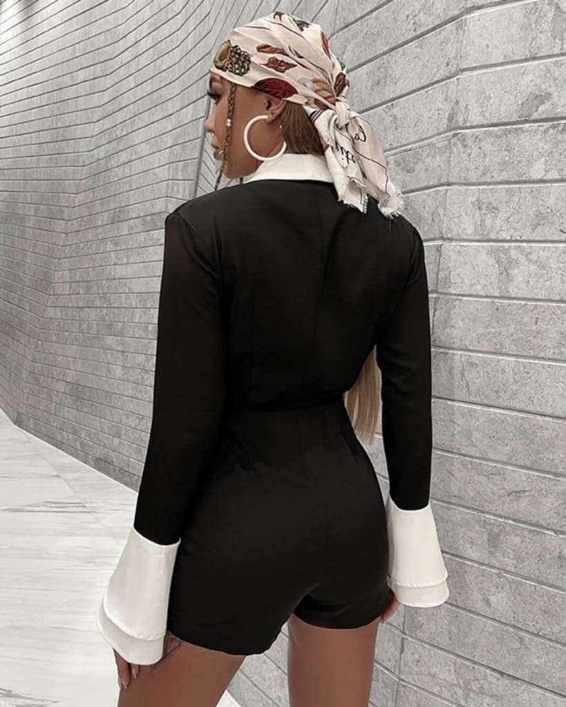 Look fabulous with our elegant office long sleeve ruffles black short jumpsuit. Ideal for most occasions.
