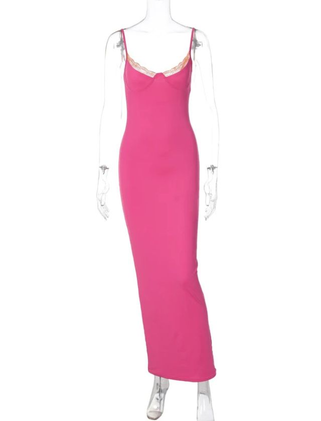 Featuring a flattering V-Neck and alluring Spaghetti Straps, this bodycon dress is designed to hug your curves in all the right places. The patchwork lace detail adds a touch of elegance, making it ideal for summer parties, casual outings, or even as a show-stopping maxi dress for those special events.