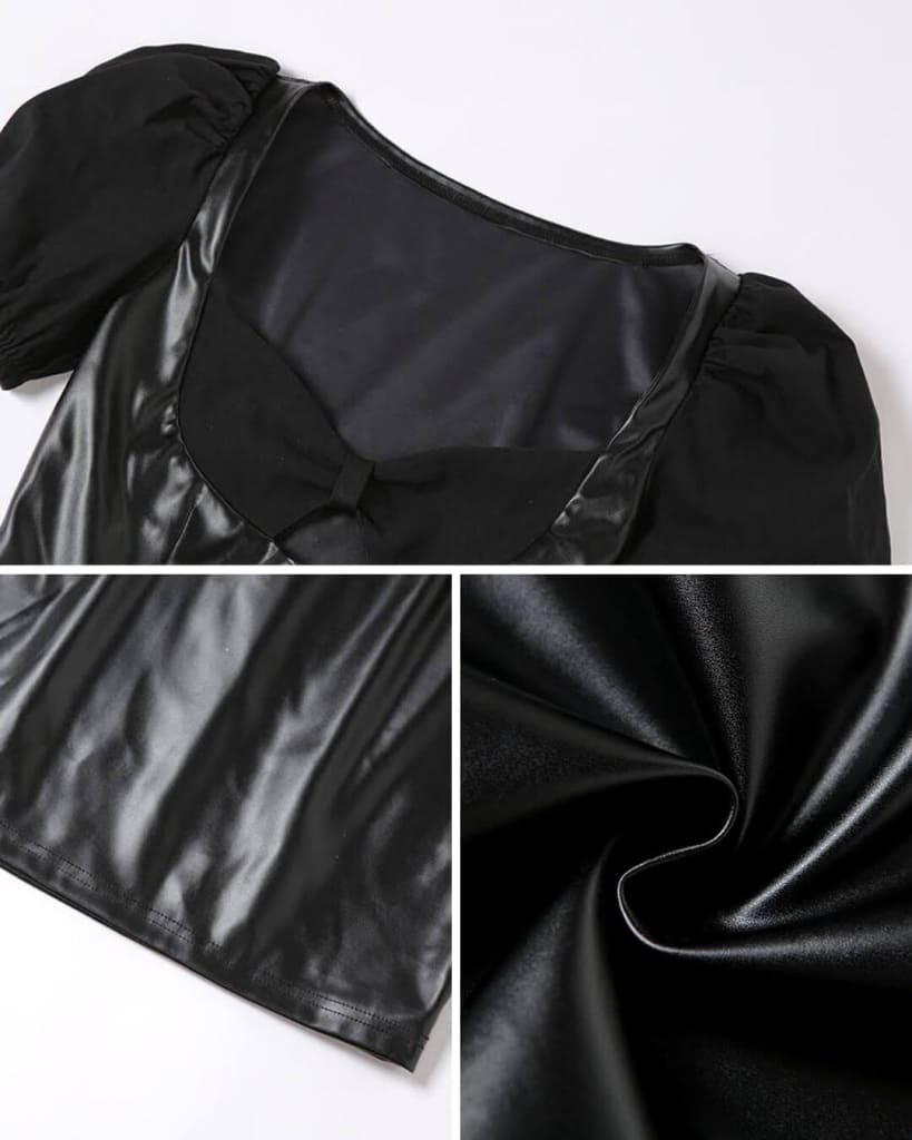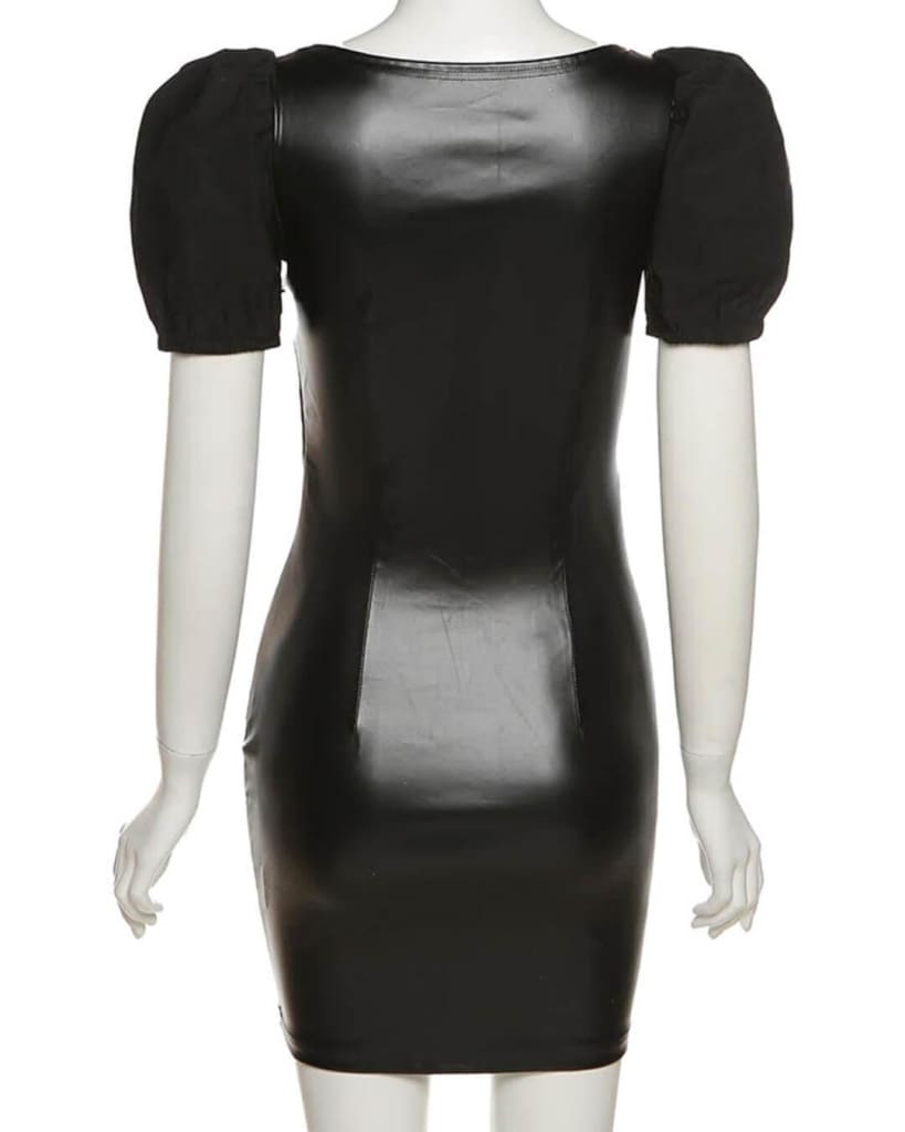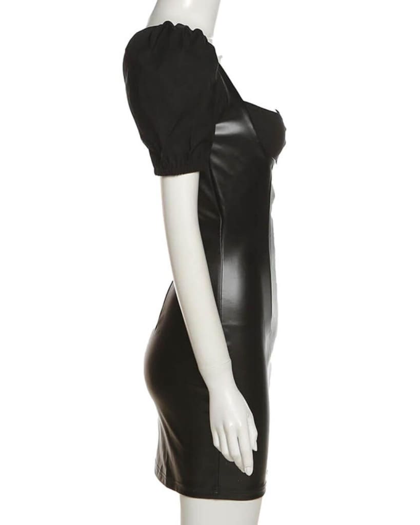This bodycon mini dress features a flattering v-neck and trendy puff sleeves, adding a touch of drama to your look. The stretchy PU leather fabric ensures a comfortable and figure-hugging fit, allowing you to showcase your unique style with ease.