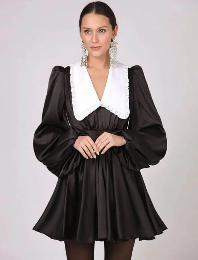 Our mini dress is not only stylish but comfortable, too. The satin material gives a luxurious feel, perfect for a night out on the town or a special event. The long sleeves keep you covered and warm during the winter, while the mini length adds a playful touch for the summer months.