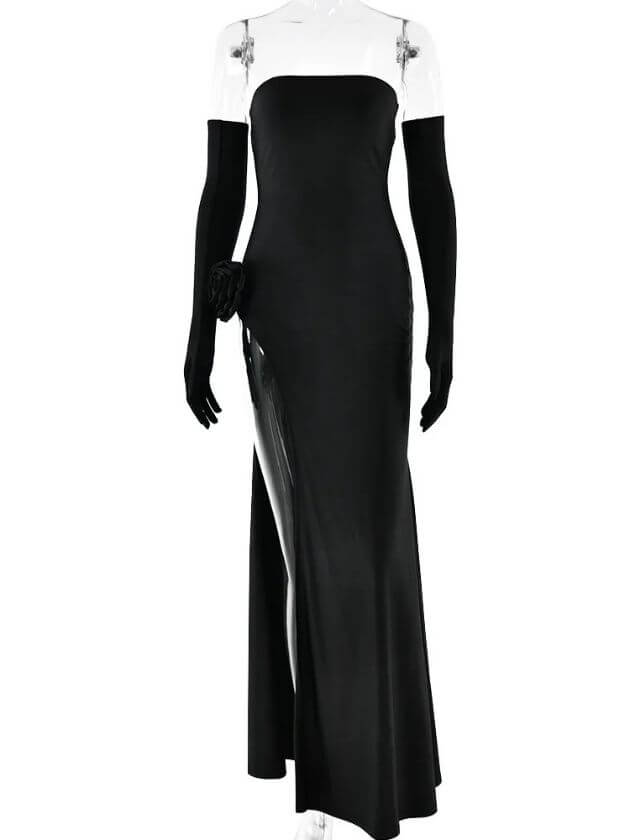The Elegant Strapless 3D Flower Slit Dress With Gloves is a testament to our dedication to delivering fashion-forward pieces that empower you to express your unique style.