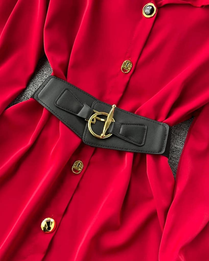 This Elegant Waist Band Blouse Shirt Dress is the perfect addition to your wardrobe, with its formal and casual style. The design features a shirt with belt, creating a mini dress silhouette for any occasion. Perfect for both everyday wear and special events.