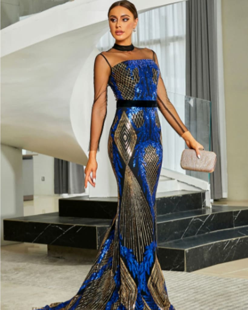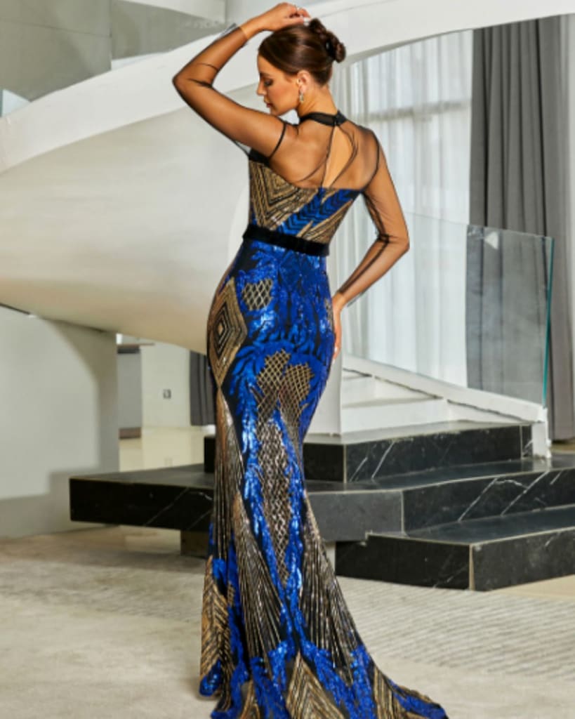 Dare to shine in this Evening Mesh O-Neck Long Sleeve Sequins Maxi Dress. This stunning dress is sure to make a statement and will give you the confidence to live life on the edge. Perfect for a night out or a special event. Unleash your sparkle!