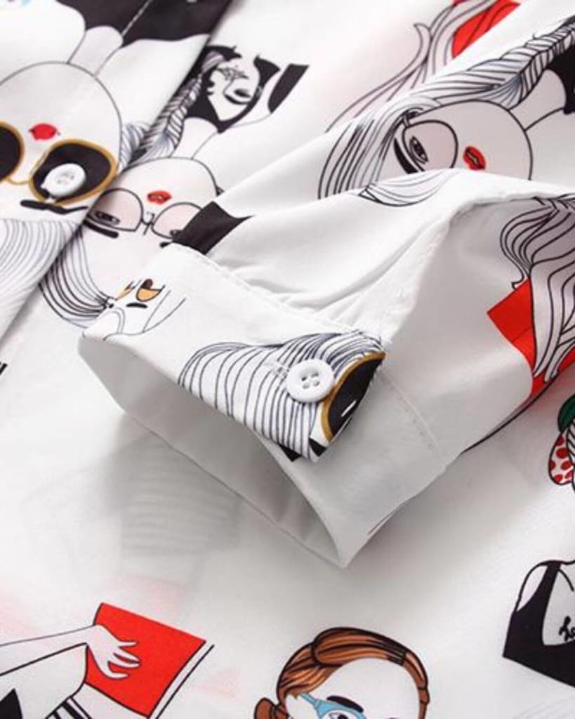 This stylish Fashion Cartoon Print Long Sleeve Shirt is ideal for casual days in the summer. Featuring a fun cartoon print, this shirt will keep you looking fashion-forward and cool on balmy days.