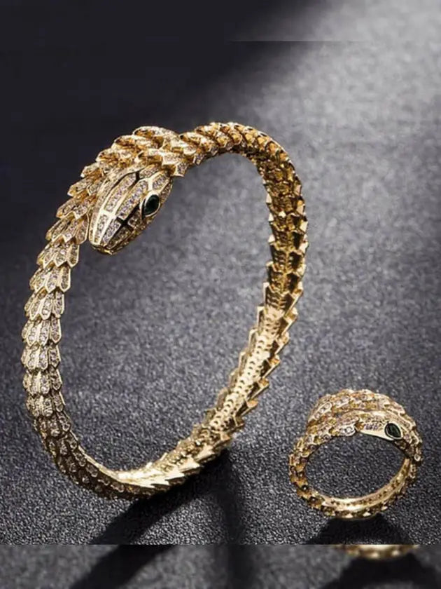 Exquisite elegance comes in abundance when you accessorize your look with a cubic fashion ring and bangle jewelry set.