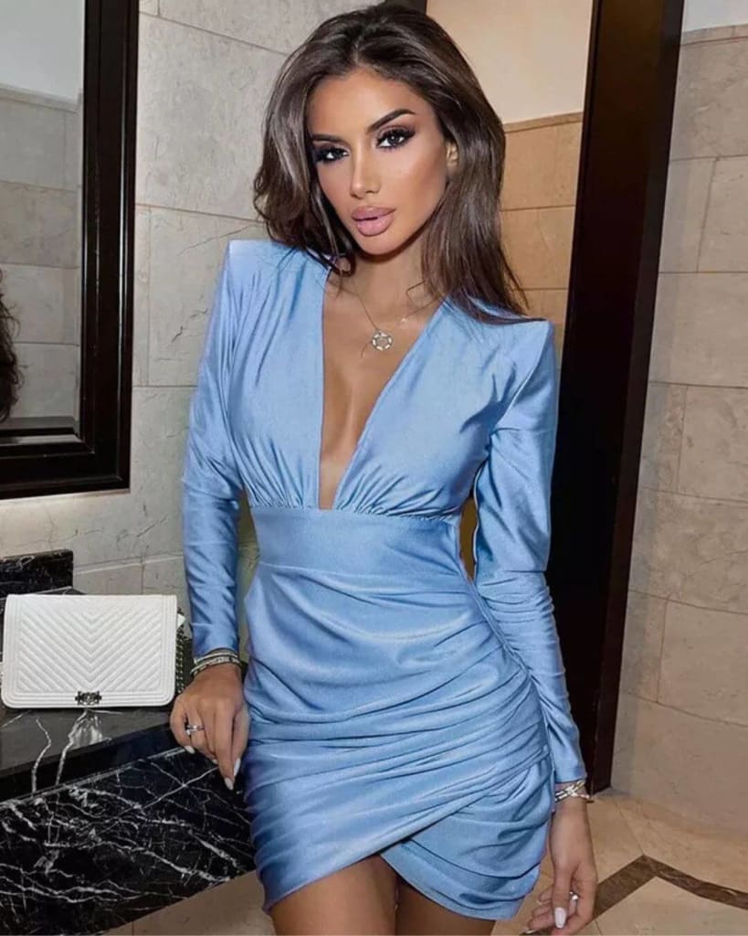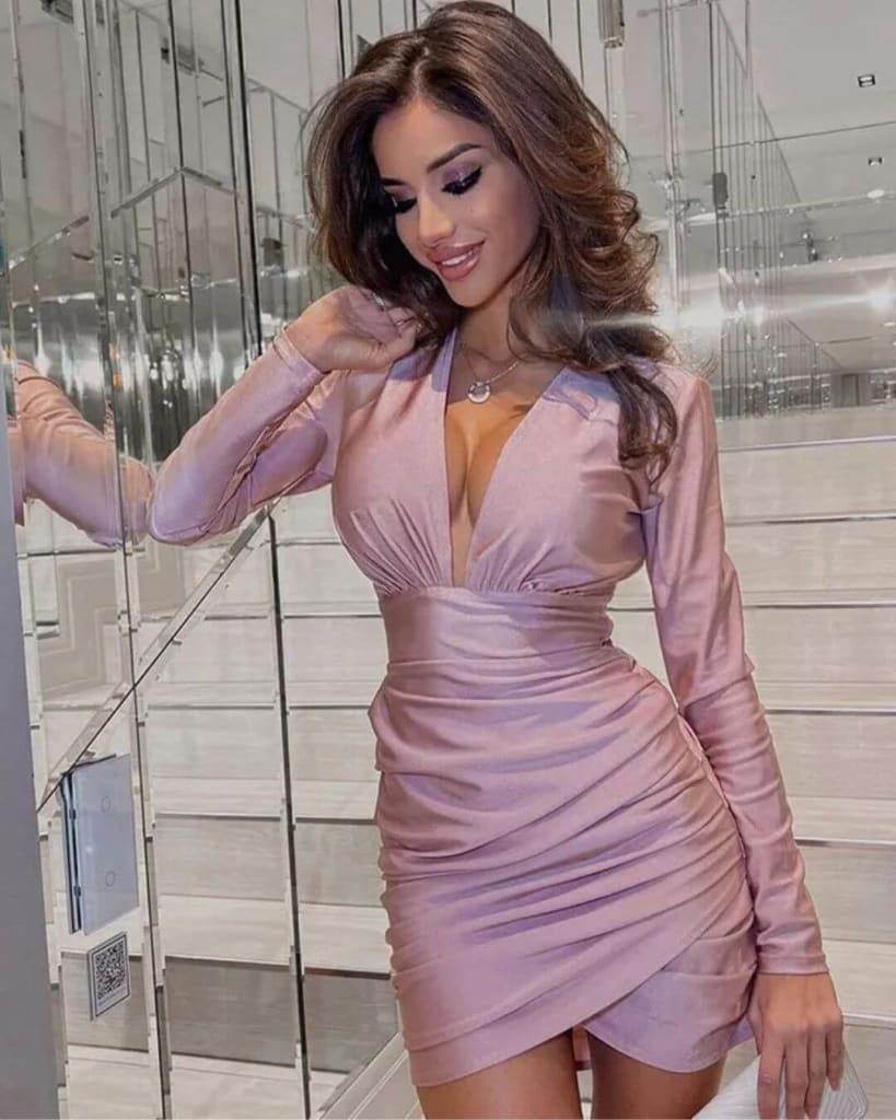 Step into the spotlight with the Fashion Evening Deep V-Neck Sexy Bodycon Mini Dress. Designed to enhance your curves, this dress features a daring deep V-neckline and a sleek bodycon fit that creates a bold yet elegant silhouette. Its modern design delivers the perfect balance of glamour and confidence for standout evening style.