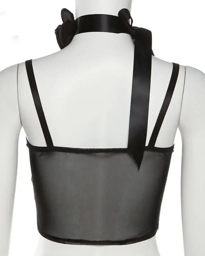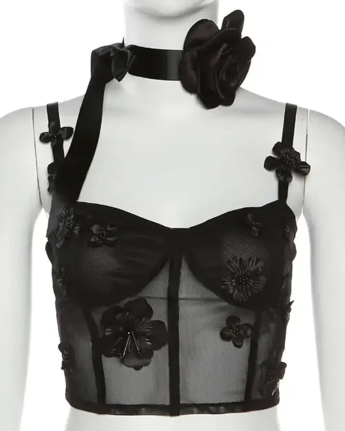 Spoil yourself with a special body on fashion sexy mesh see through flower black mesh patchwork crop top for a gorgeous look. Transform your wardrobe with this stunning crop top! Featuring mesmerizing mesh details and a flattering flower design, this top will elevate your style game and make you stand out from the crowd. Embrace your inner fashionista and feel confident and elegant in this must-have statement piece. Treat yourself to the ultimate blend of style and comfort with our Sexy Mesh See Through Elegant Black Crop Top!