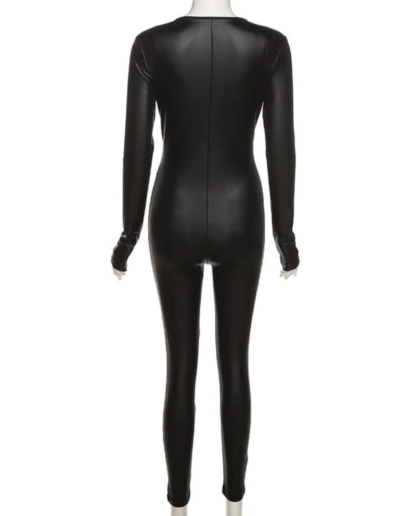 Be seduced by the faux leather V-neck long sleeve jumpsuit by STYLORD! Perfect to wear to your next party. Step into the spotlight and turn heads with the daring and alluring faux leather jumpsuit from STYLORD. It’s a must-have for any bold and adventurous fashion enthusiast looking to make a statement at their next event!