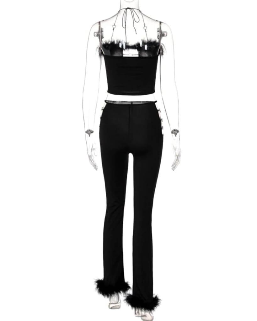 Get ready to turn heads and steal the spotlight in our Feather Hollow Out Crop Top Wide Leg Pants Two Piece Set. This fierce and fabulous set is a must-have for any fashionista who’s ready to make a statement. Whether you’re hitting the club, attending a cocktail party, or just want to look extra glam this summer, this set has got you covered.