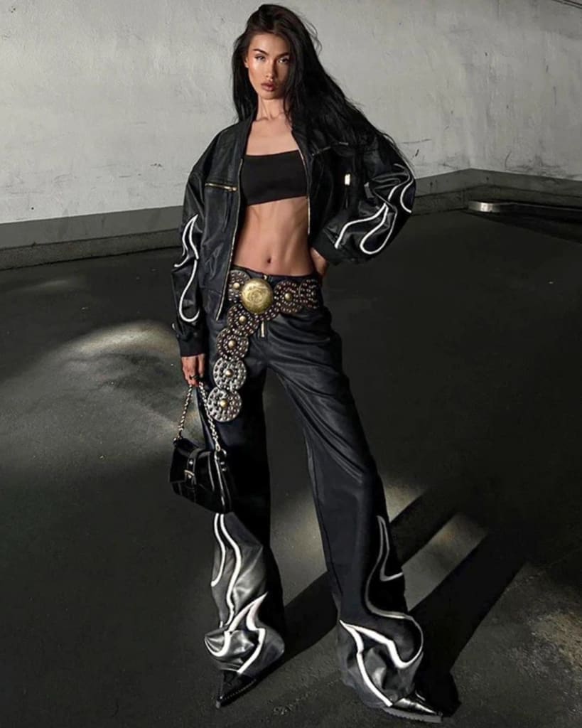 Introducing our Flame Embroidery Goth Punk Flare Leather Pants – the ultimate statement piece for the bold and fearless fashionista. Crafted from high-quality PU leather, these pants are designed to make you stand out in a crowd and ignite your inner fire. These pants are perfect for unleashing your adventurous spirit and experimenting with your style. Whether you’re hitting the town for a night out with friends or want to make a grand entrance at a party, our flame embroidery goth punk flare leather pants are guaranteed to turn heads and spark conversation.