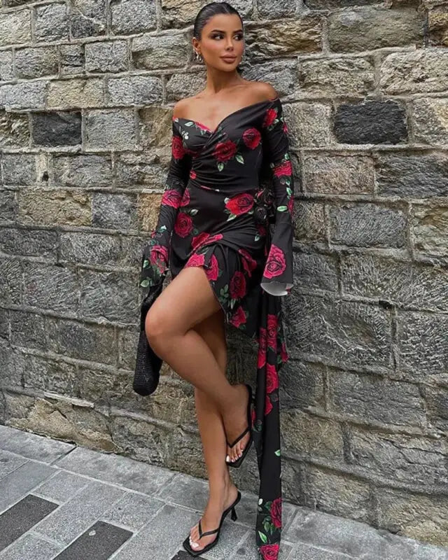 Unleash your bold and adventurous side with the Floral Print Long Sleeve Ruched Bodycon Mini Dress! This daring dress features a stunning floral print and figure-hugging body-con design, perfect for those who love to take risks and make a statement. The ruched detailing adds a touch of playful charm to this mini dress, making it an ideal choice for any occasion.