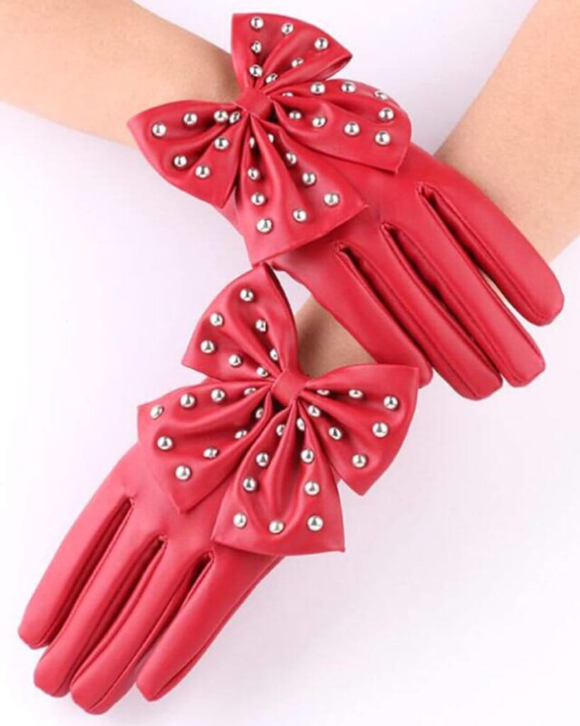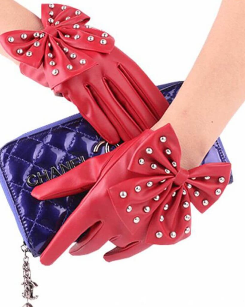 Make a style statement this season with ultra-chic bow PU leather full finger fashion leather gloves.