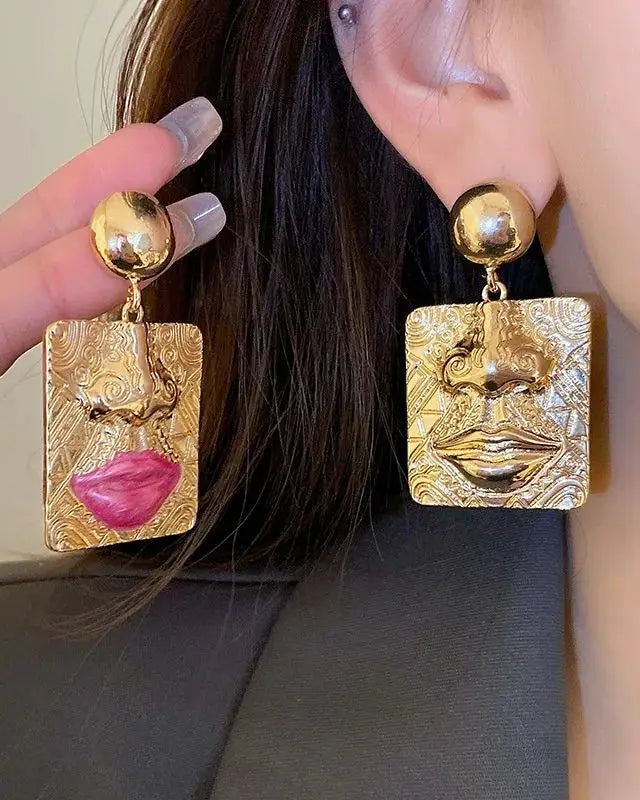 Enhance your style with our Geometric Square Embossed Face Portrait Earrings. Handcrafted with precision, these earrings feature a unique geometric design that adds a touch of sophistication to any outfit. Add a modern twist to your look with these statement earrings.