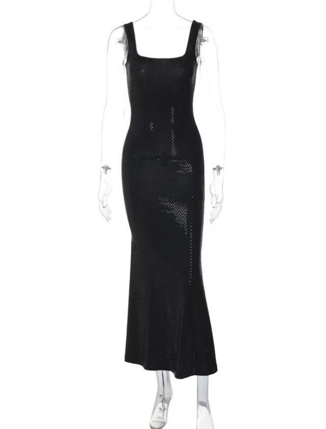 The V-neck and sleeveless design adds a touch of allure, while the maxi length brings an elegant and sophisticated feel. The stretch fabric ensures a comfortable fit that hugs your curves in all the right places, allowing you to dance the night away with ease.