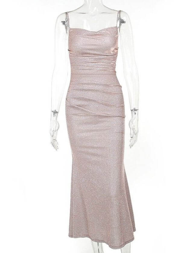 With its sequin-embellished fabric, this dress is the epitome of glamour and sophistication. The bodycon silhouette hugs your curves in all the right places, while the halter neckline and sleeveless design add a touch of sexiness to the look.