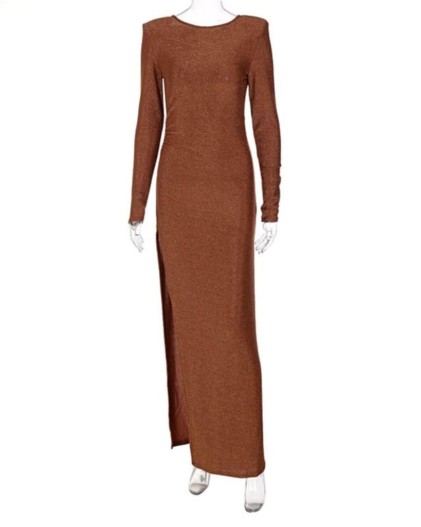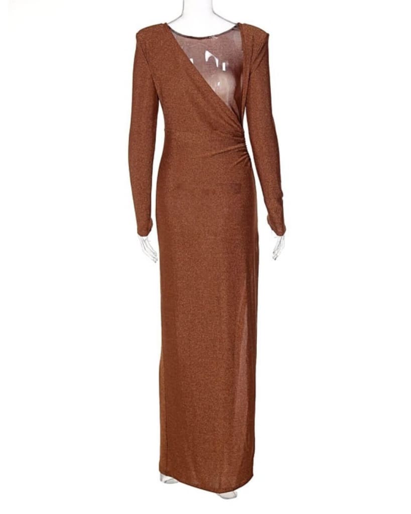 Flaunt this stylish and elegant backless gold silk maxi dress for upcoming events and look effortlessly stylish wherever you go.