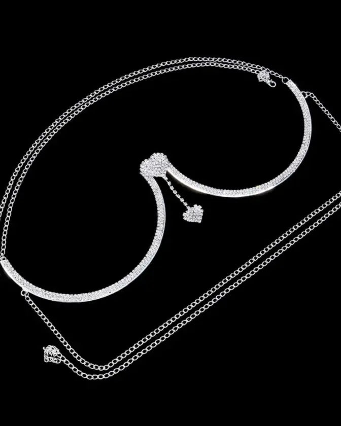 With its eye-catching heart pendant and sparkling rhinestones, this bra chain will add a touch of glamour to any ensemble. It’s the perfect piece to elevate your beach look, become the star of the party, or surprise your special someone with a stunning Valentine’s Day gift.