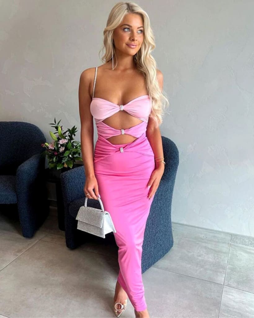 Step into the spotlight and turn heads with our Hollow Cut Out Pink Gradient Party Dress! This stunning dress is designed to make you the star of any event, whether it’s a summer cocktail party, prom, or a special night out. With its flattering bodycon shape, V-neck, and backless design, this dress is perfect for showing off your confidence and adventurous style. The bold cut-out details add an edgy touch, while the gradient pink color adds a fun and flirty vibe.