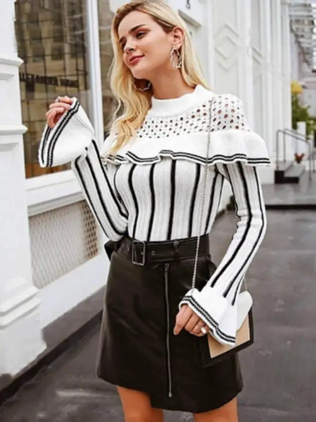 Hollow Out Ruffles Sweater