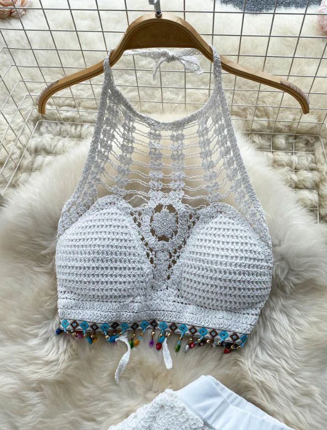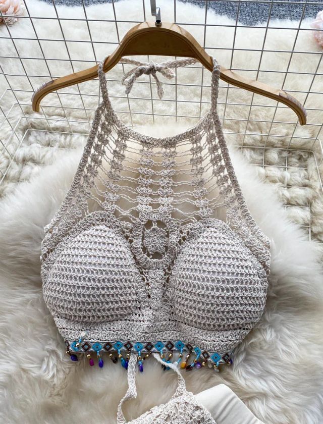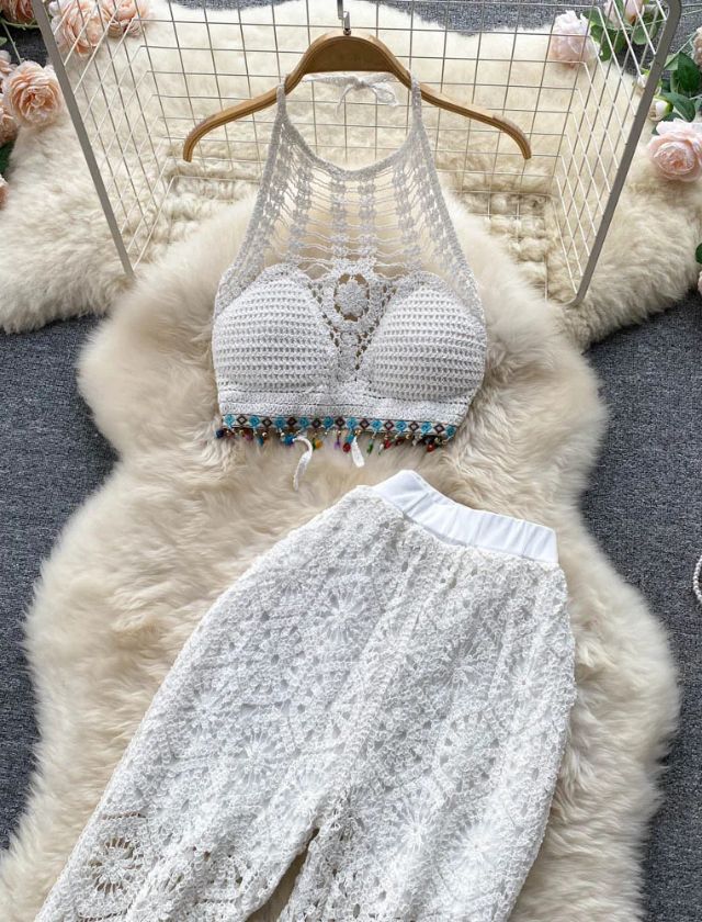 Soak up the sun in style with our Knitted Halter Top + Pant Beach Cover Up — a two-piece set made for effortless summer glam. Featuring a breathable, open-knit halter top and matching high-waisted pants with a relaxed fit, this look adds texture and boho vibes to your beachside wardrobe. Lightweight and semi-sheer, it’s the perfect layer over your favorite bikini or one-piece.